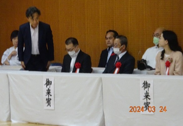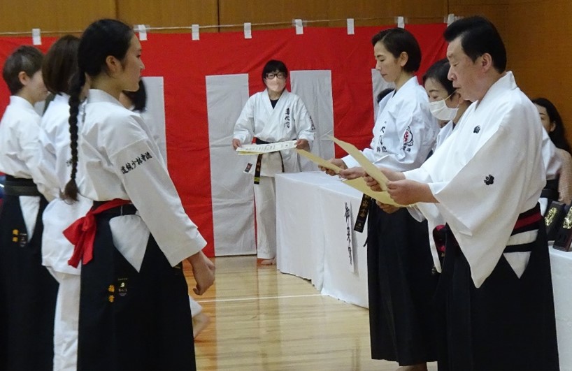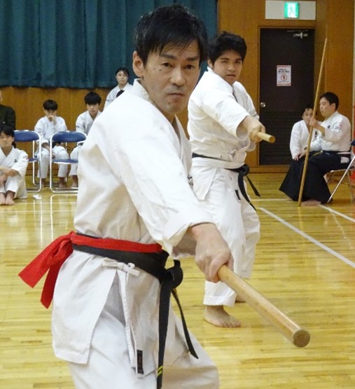 The atmosphere grew tense with performances, CHINTO, GOJUSHIHO, BASSAI, and KUSHANKU by elementary and middle school representatives, BO-JUTSU by Kurosawa SHIHAN, and TOKUMINE NO KON by Ono SHIHAN.