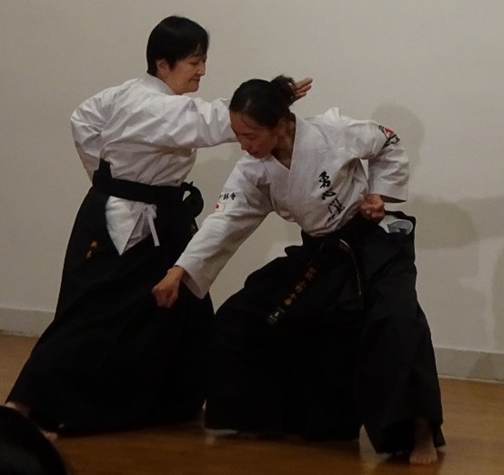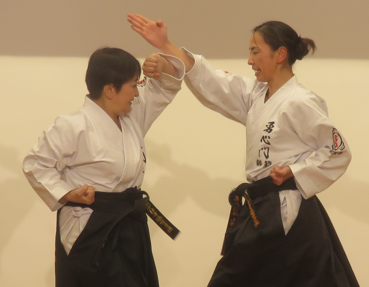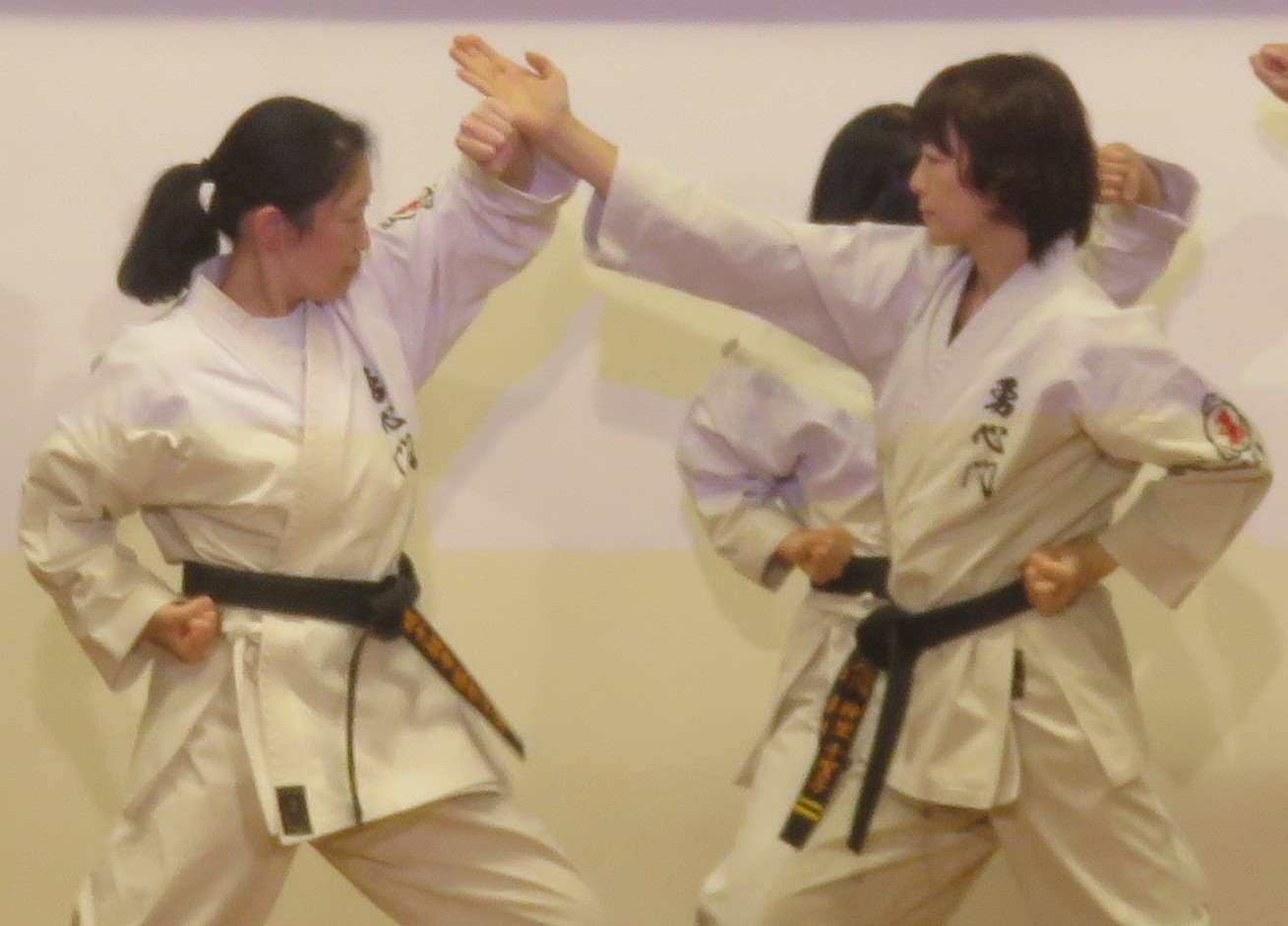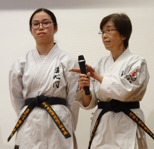 Model demonstration of YAKUSOKU KUMITE by KONOKI Yoko 6th Dan KYOSHI (left) and ONO Chihiro 5th Dan RENSHI (right)