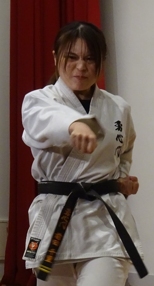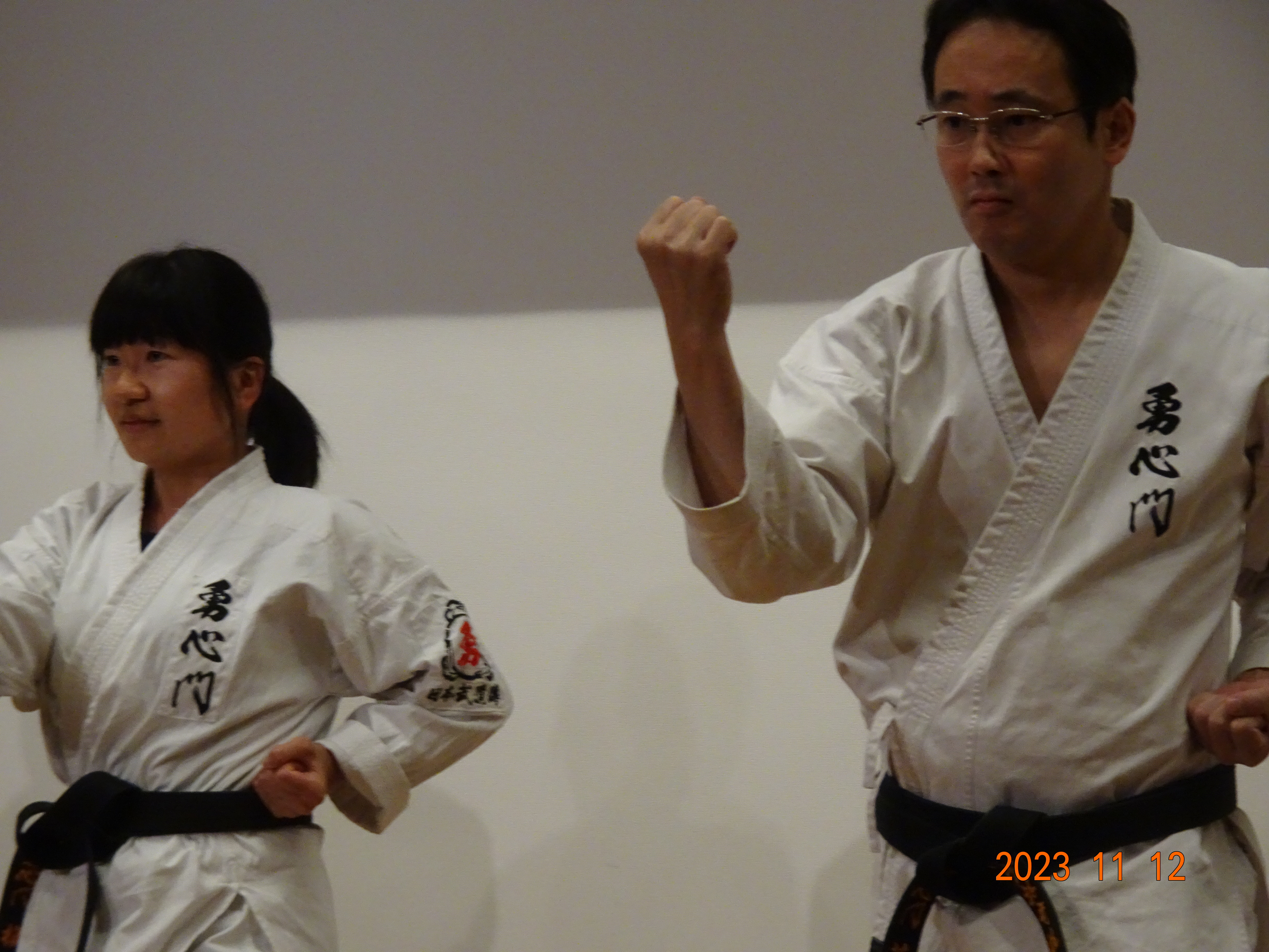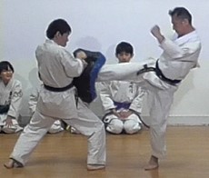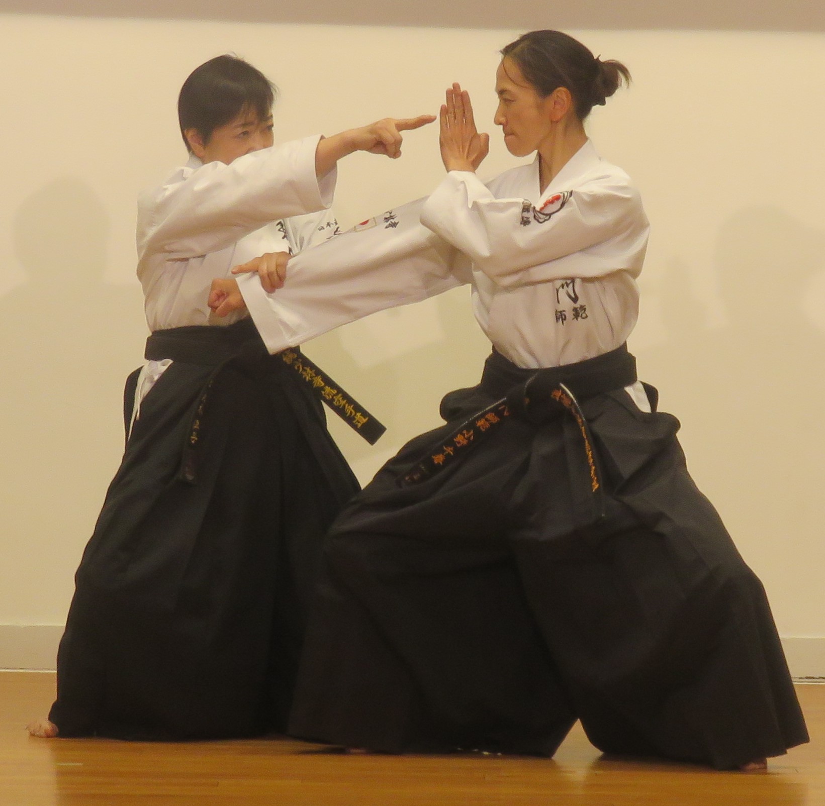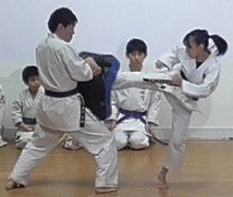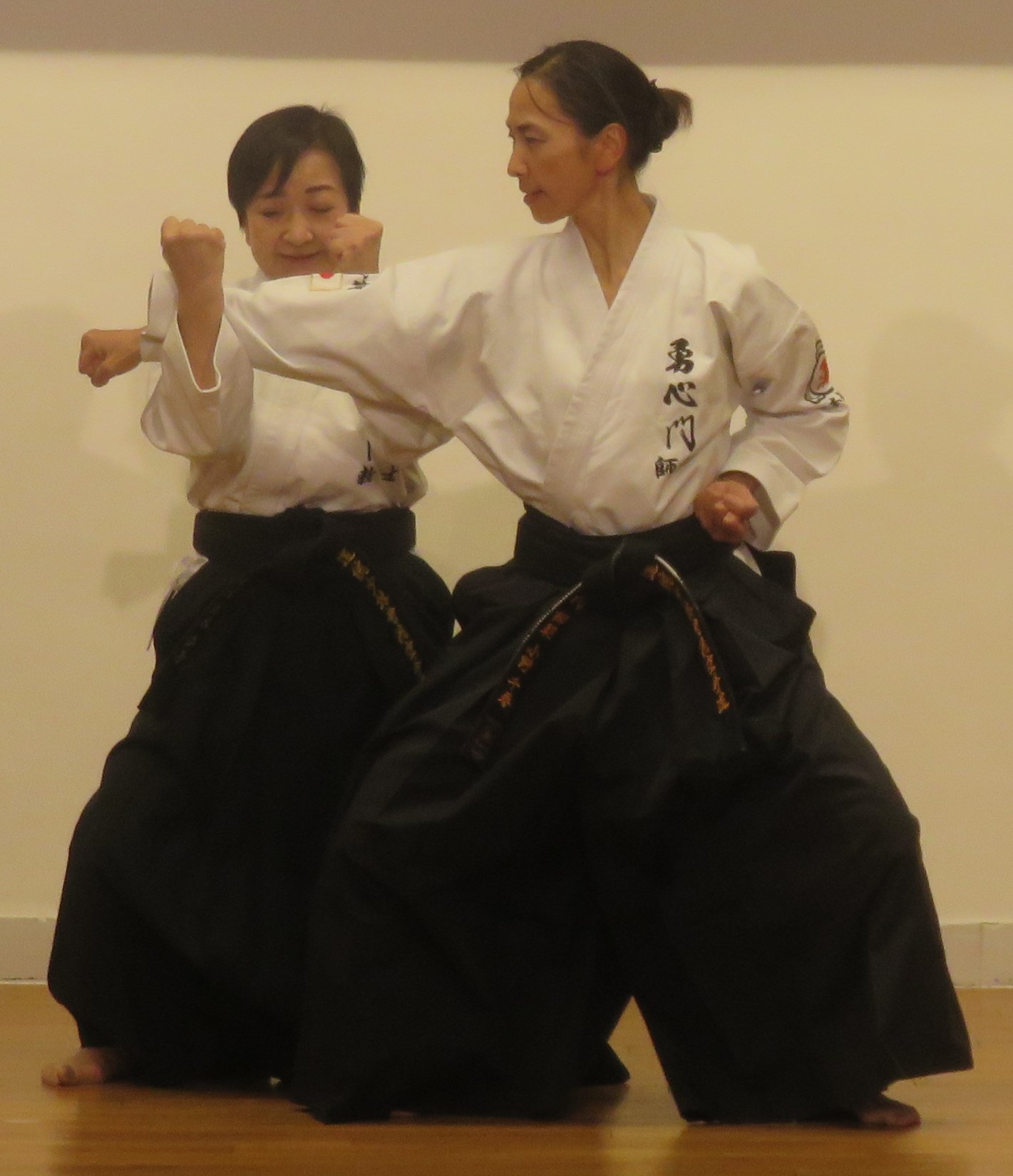 Model demonstration of YAKUSOKU KUMITE by KONOKI Yoko 6th Dan KYOSHI (left) and ONO Chihiro 5th Dan RENSHI (right)