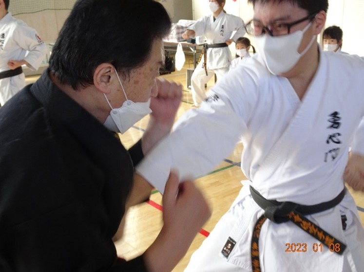 Soke himself stepped down from the stage and gave the order of 1,000-bon TSUKI in front of everybody. He looked at each participant's face and said that he foresaw a bright year ahead.