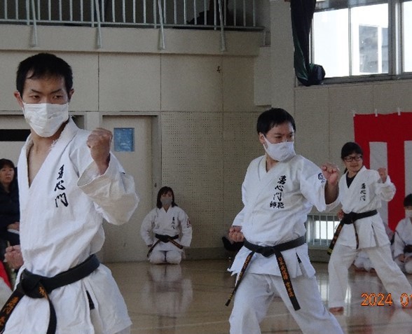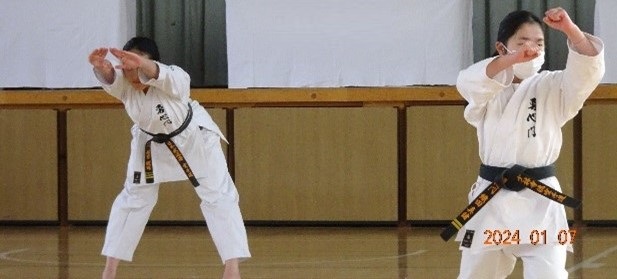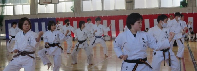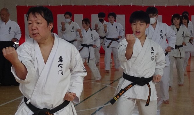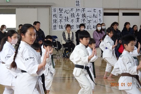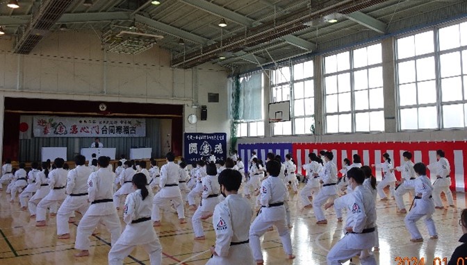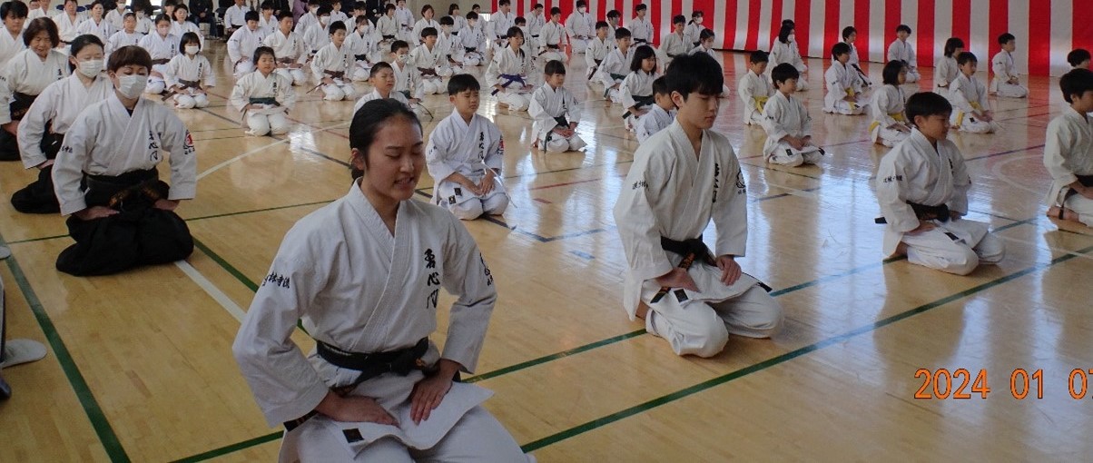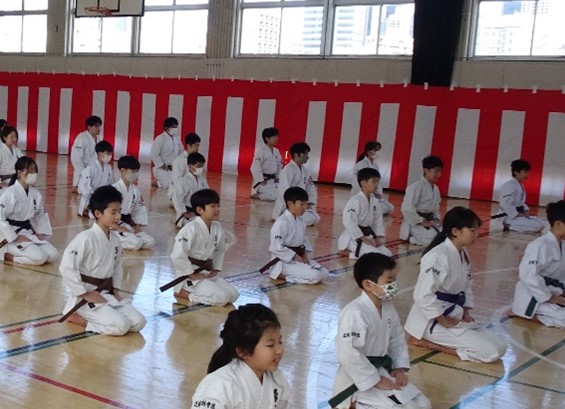 We conducted our New Year's Kangeiko, the cold weather training. This year, we planned to hold the training outdoors at Shinjuku Chuo Park. Unfortunately, due to the rampant spread of influenza and COVID-19, we decided to hold the event indoors.