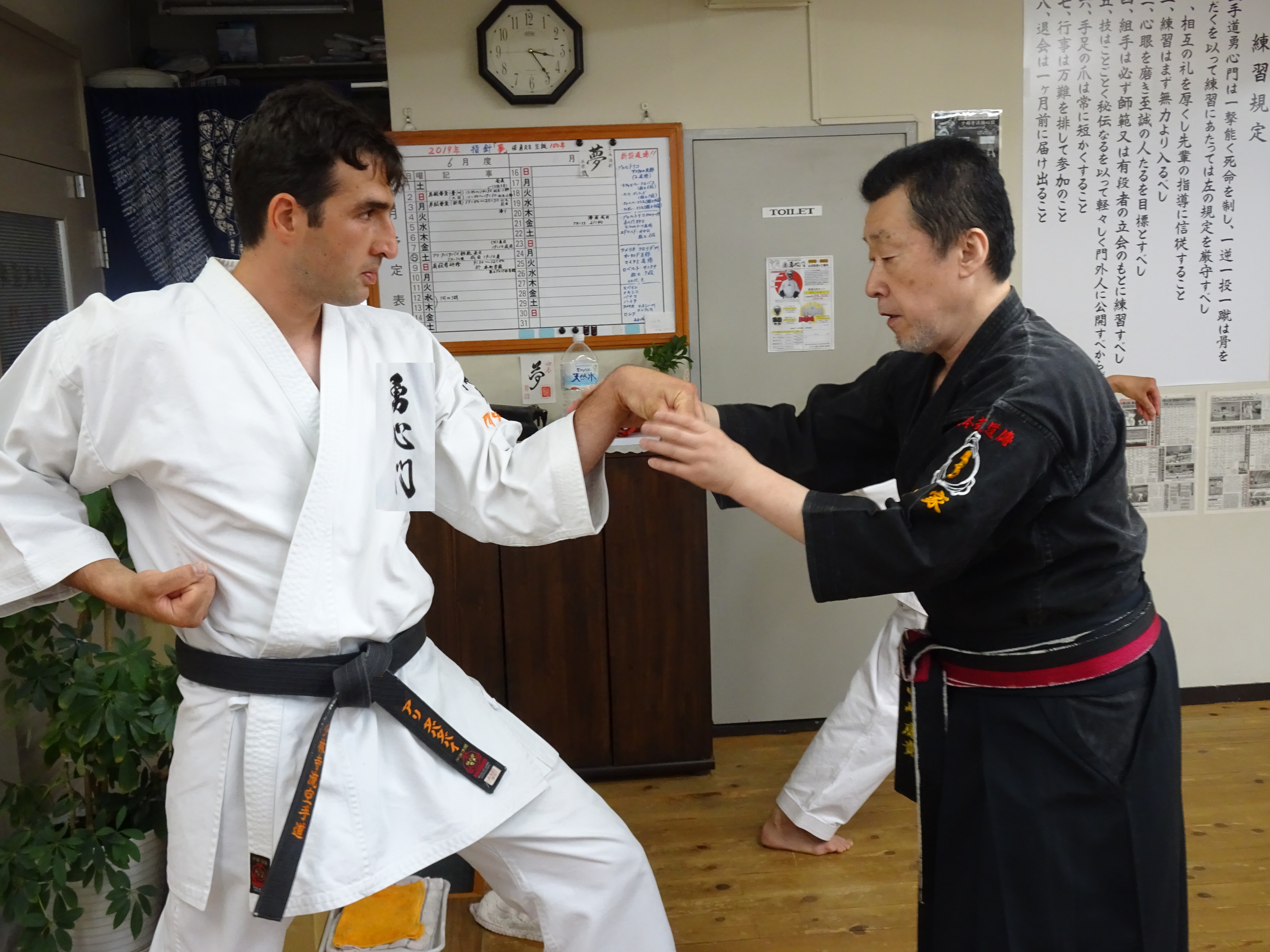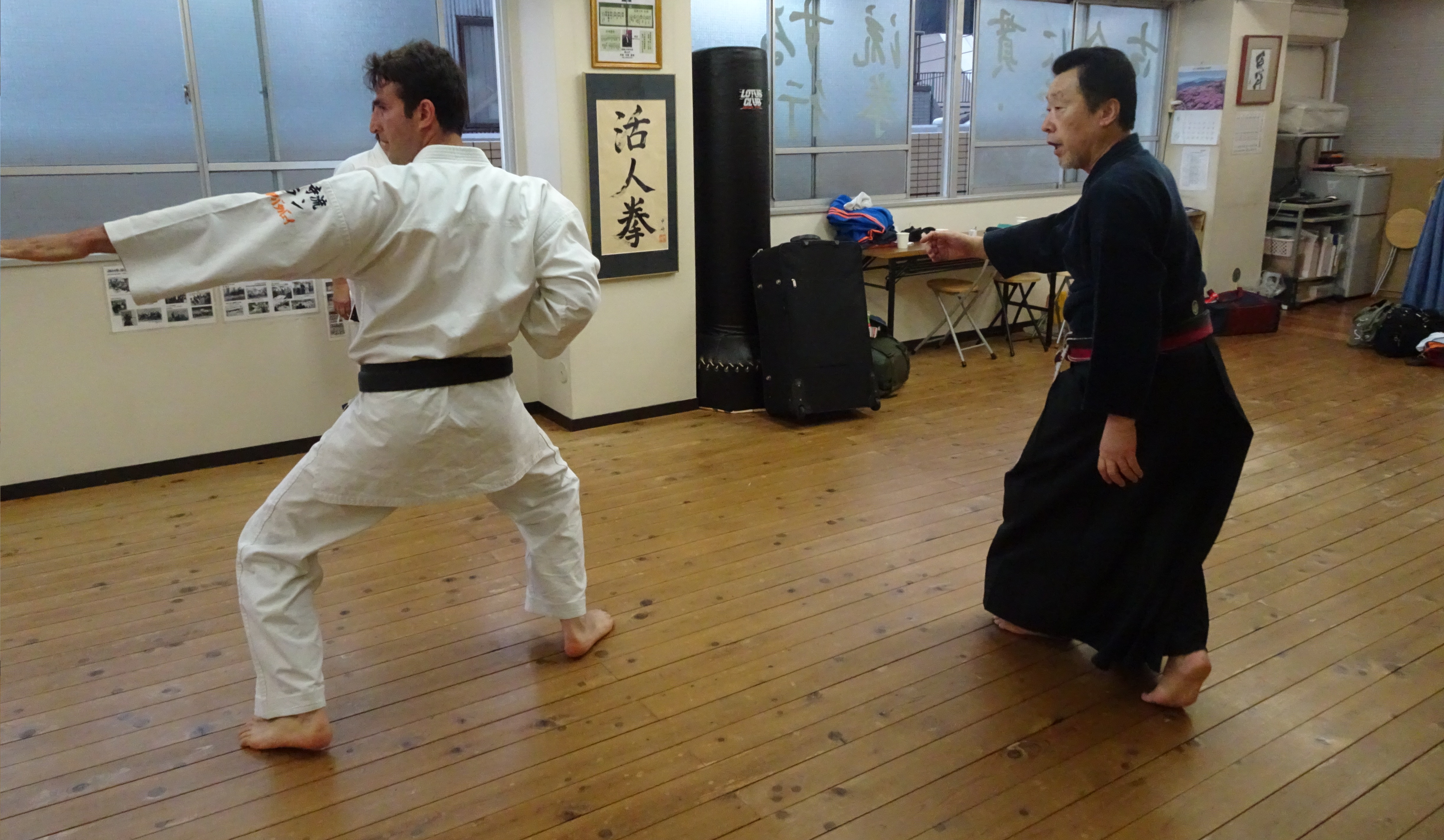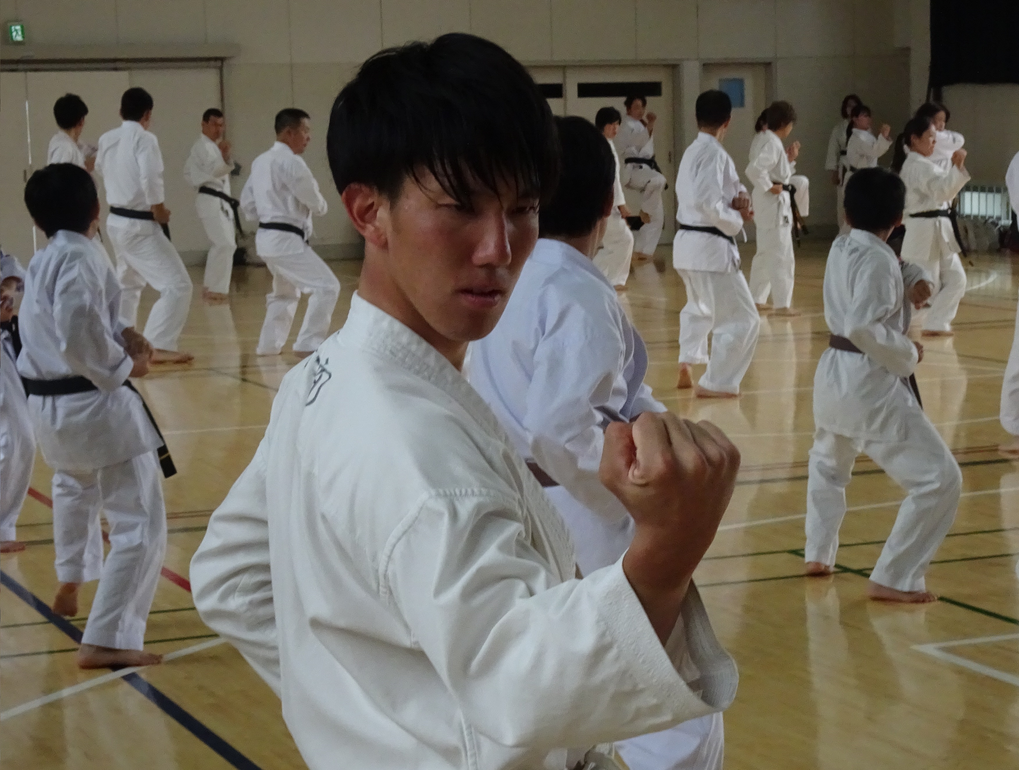 翌9日より、早速稽古を始めました。総本部道場で毎日汗を流し、稽古時間も徐々に長く、中﨑宗家自らつきっきりで、基本をはじめ型を重点的に細部に至るまで丁寧に指導しました。
