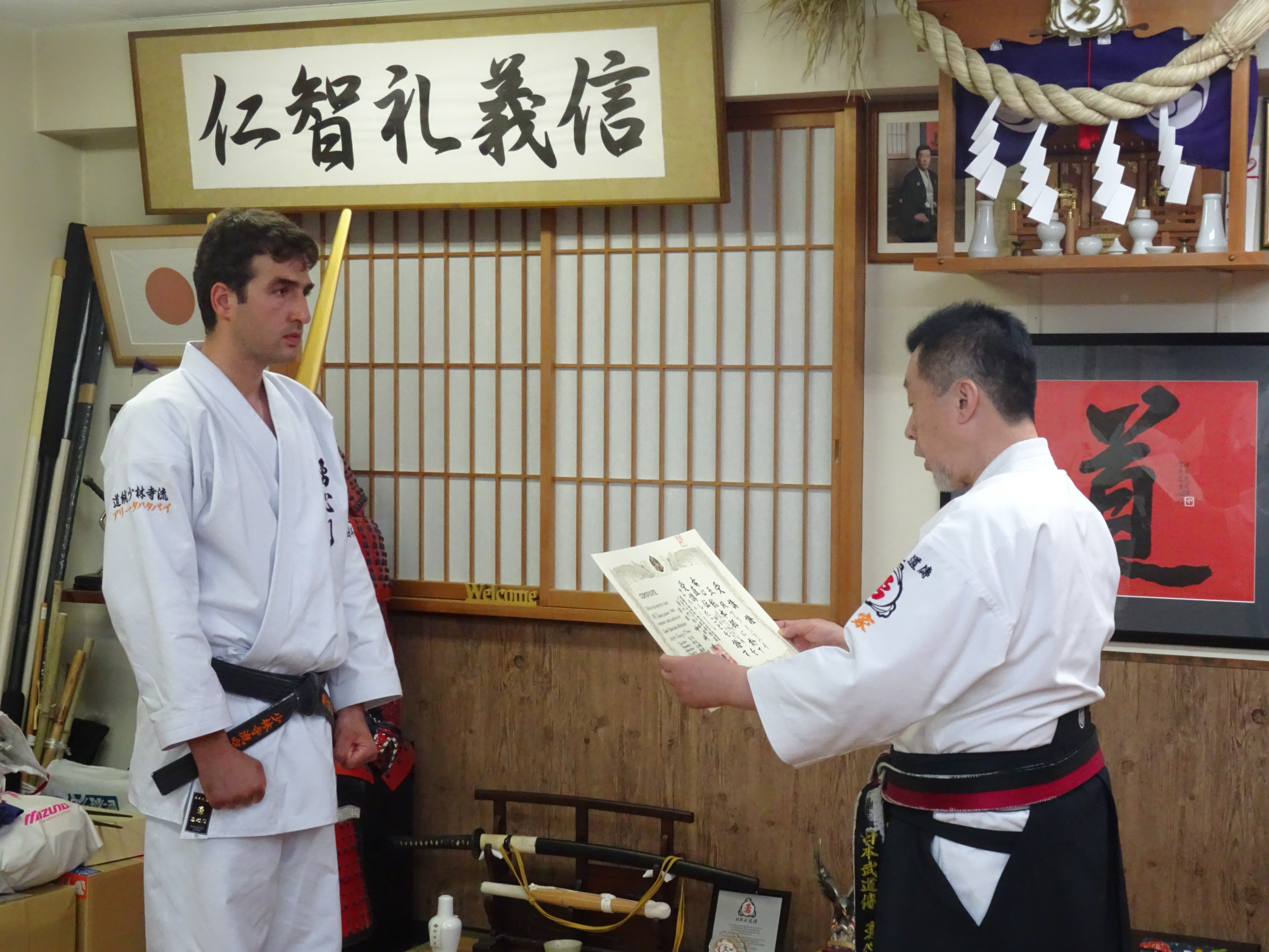 2週間の研修を無事に終え、21日に再び向かった成田空港のロビーで、二人とも涙を流しながら、中﨑宗家と熱い握手を交わし、「この貴重な体験は、近い将来、必ずイラン、アゼルバイジャン、イギリス、ヨーロッパの各地で実を結ぶことでしょう」と、熱い思いを語りつつ、帰国の途に就いたのでした。