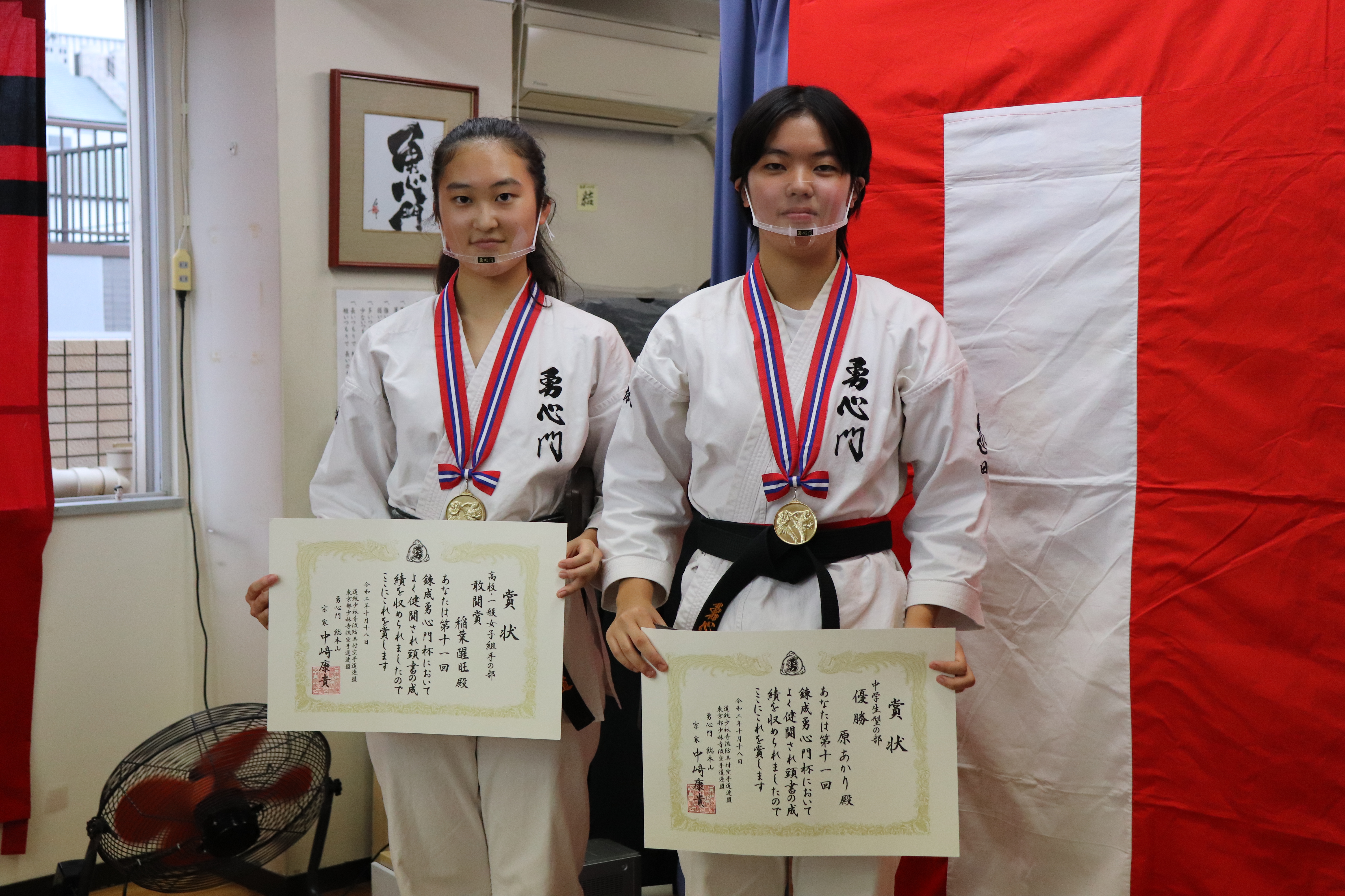 高校・一般女子型の部優勝(写真左)、中学生型の部優勝(写真右)